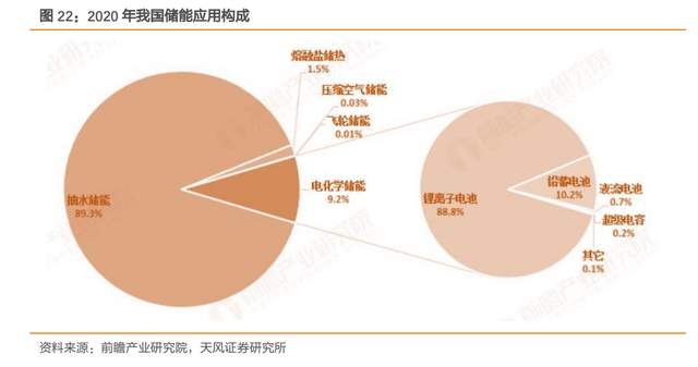 在中国储能市场中,抽水蓄能的累计装机规模最大,占比达到了89.3%;其次是电化学储能,装机规模占比为9.2%。但我们认为,电化学储能拥有良好的发展前景。