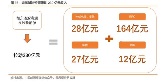 在光伏开发的同时,可以附带起约800MWh的储能装置,带来近12亿元的收入,合计收入将超230亿元。