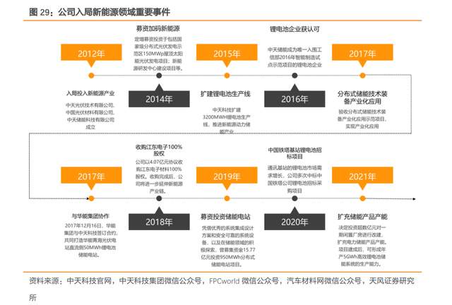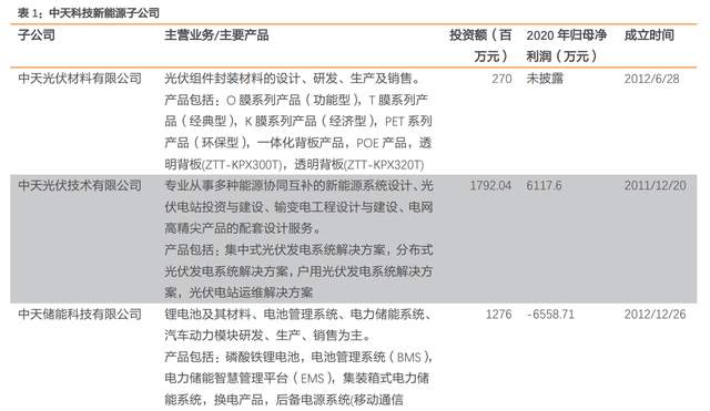 中天科技早在2012年便进入新能源领域,建立了中天光伏技术有限公司、中天光伏材料有限公司以及中天储能科技有限公司,随后通过募资、收购、扩建等方式在新能源领域持续布局,经过多年沉淀发展,已在产业内具备较强的竞争力。