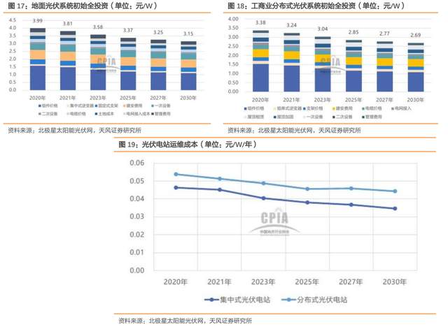 预计未来随着技术发展以及上游如多晶硅、玻璃等原材料价格的下降,全投资成本将持续下降,带动建设发展。