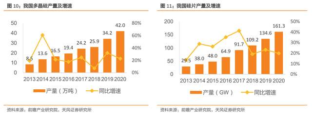多晶硅方面,据中国光伏协会统计数据显示,2012年以来,我国多晶硅产量持续增长,2020 年,全国多晶硅产量为41.95万吨,同比增长22.7%。