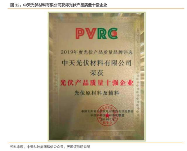 公司在光伏领域提供性能优异,质量高保障的产品,中天光伏材料的ZTT-KPO等 7 款背板荣获江苏省“高新技术产品认定”,ZTT-KPK 等 3 款背板荣获江苏省“新产品鉴定”,ZTT-KPO荣获“南通市科学进步奖”,并且两届获得德国 TUV 莱茵“质胜中国”优胜奖。