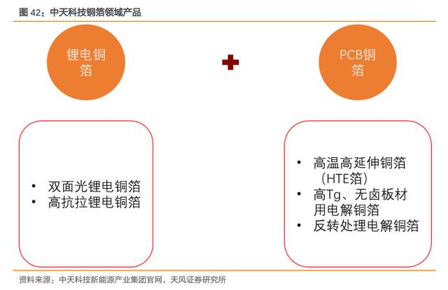 中天科技在铜箔行业主要提供锂电铜箔与电路板铜箔的生产制造,能够生产高性能线路板用铜箔和 6 微米超薄锂电池用铜箔,广泛应用于锂电池、手机、电脑、家电及新能源客车等方面。