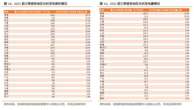 我们预计随着发展新能源需求的推动,光伏装机量持续提升,光伏发电占总发电比重将持续增长。
