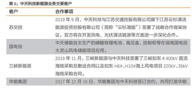 中天科技新能源业务的客户包括众多领先国企,如中国铁塔、苏交控、国电投、中国联通等,公司在新能源业务多年发展积累了良好的品牌口碑以及客户资源。
