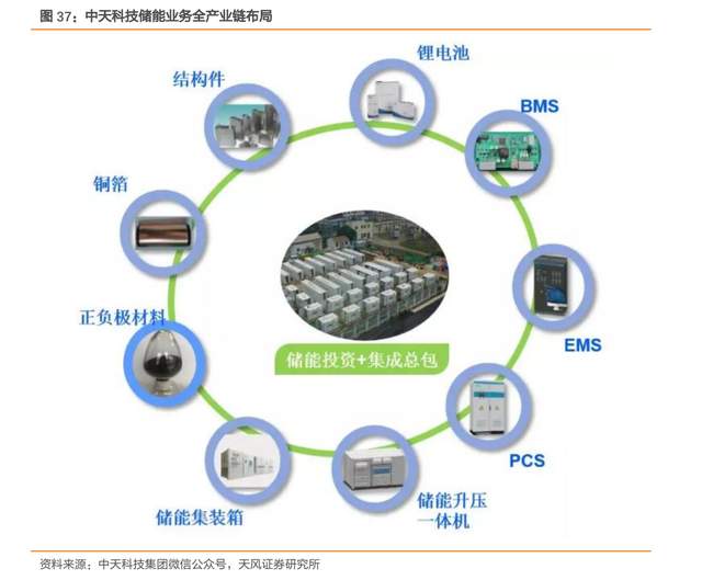 经过多年在储能行业的发展,中天科技储能业务形成含电池正负极材料、结构件、铜箔、锂离子电池、BMS、PCS、EMS、变压器、开关柜、储能集装箱等核心部件的完整储能产业链,实现电网侧储能电站所需设备内部自主配套率95%以上,用户侧储能电站所需设备内部自主配套率99%以上,凭借产业链优势,逐渐成为储能行业公认的领跑者。