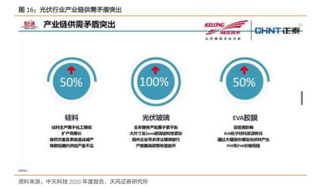 2020年因扩产周期长,自然灾害及事故造成减产等原因,光伏上游材料如硅料、光伏玻璃价格持续上涨,硅料价格上涨50%,光伏玻璃价格上涨100%,全年整体产能属于紧平衡。