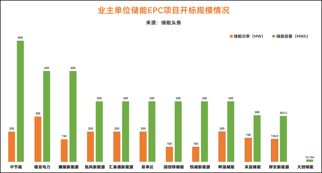 中节能、德亚电力、瀚骏新能源、旭风新能源、汇泰通新能源、易事达、国创锋储能、悦储新能源、晔晟储能、采晨储能、厚安新能源、天创绿能等公布12个储能EPC中标项目。