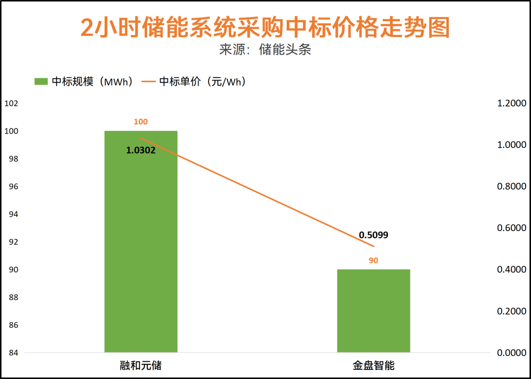 最高价由上海融和元储能源有限公司在广州发展洪湖市经开区100MW/200MWh钠离子储能电站示范项目一期50MW/100MWh项目储能系统集成采购中报出。