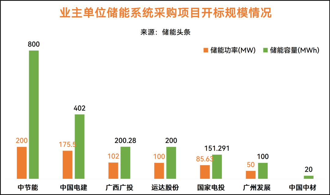 具体来看:中节能开标规模为200MW/800MWh位列第一,中国电建开标规模为175.5MW/402MWh位列第二,广西广投开标规模为102MW/200.28MWh位列第三。