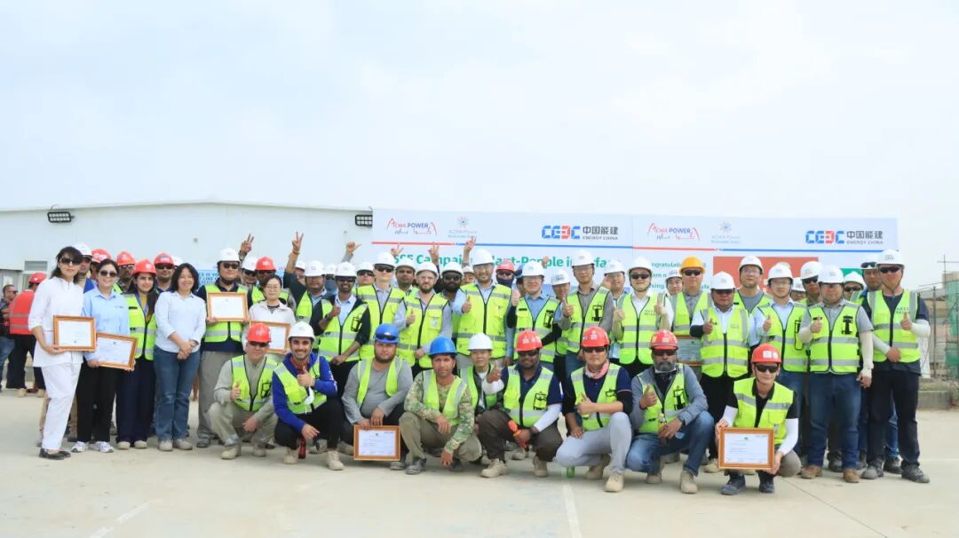 为纪念这一重要节点,项目部精心组织庆典活动。活动现场颁发了“60万安全无损工时”证书和奖杯,并对安全管理工作中表现优异的集体和个人进行了表彰。业主ACWA Power对项目部在安全文明施工管理工作中展现的高水平执行能力给予肯定,鼓励各参建单位再接再厉,确保高质量完成后续工期节点目标。