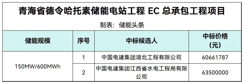 9月30日,青海省德令哈托素储能电站工程EC总承包工程(重新招标)招标中标候选人公示。
