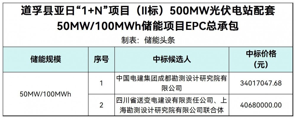 9月29日,道孚县亚日“1+N”项目(Ⅱ标)500MW光伏电站配套50MW/100MWh储能项目EPC总承包中标候选人公示。