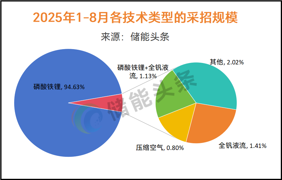 4、磷酸铁锂储能技术占比94.63%