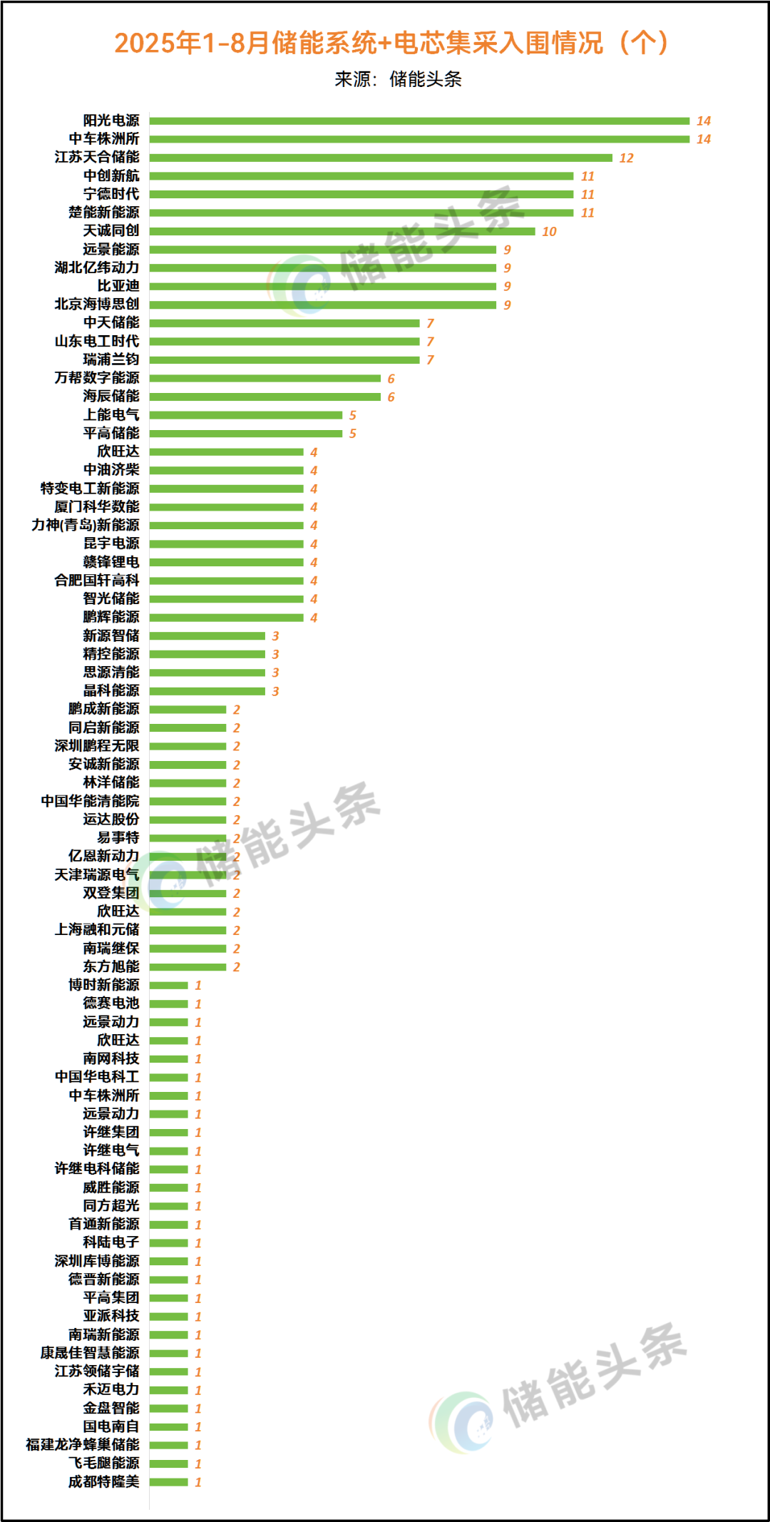 1、中车株洲所、比亚迪、赣锋锂电、新源智储、海博思创等名列前茅