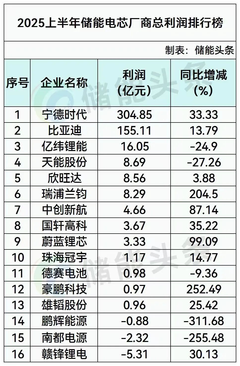 宁德时代以304.85亿元的净利润高居榜首,同比增长33.33%。