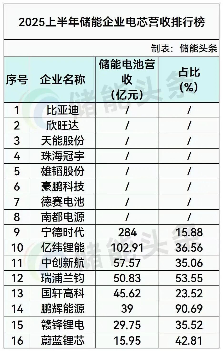 紧跟其后的天能股份、国轩高科、中创新航、瑞浦兰钧、赣锋锂电、珠海冠宇、鹏辉能源、蔚蓝锂芯、雄韬股份等企业在今年上半年同样拿到了十分亮眼的成绩。