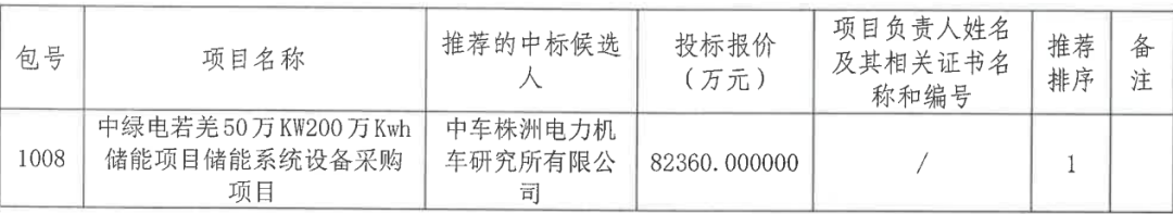 公示显示,中车株洲电力机车研究所有限公司以投标报价82360万元,折合单价0.4118元/Wh预中标。