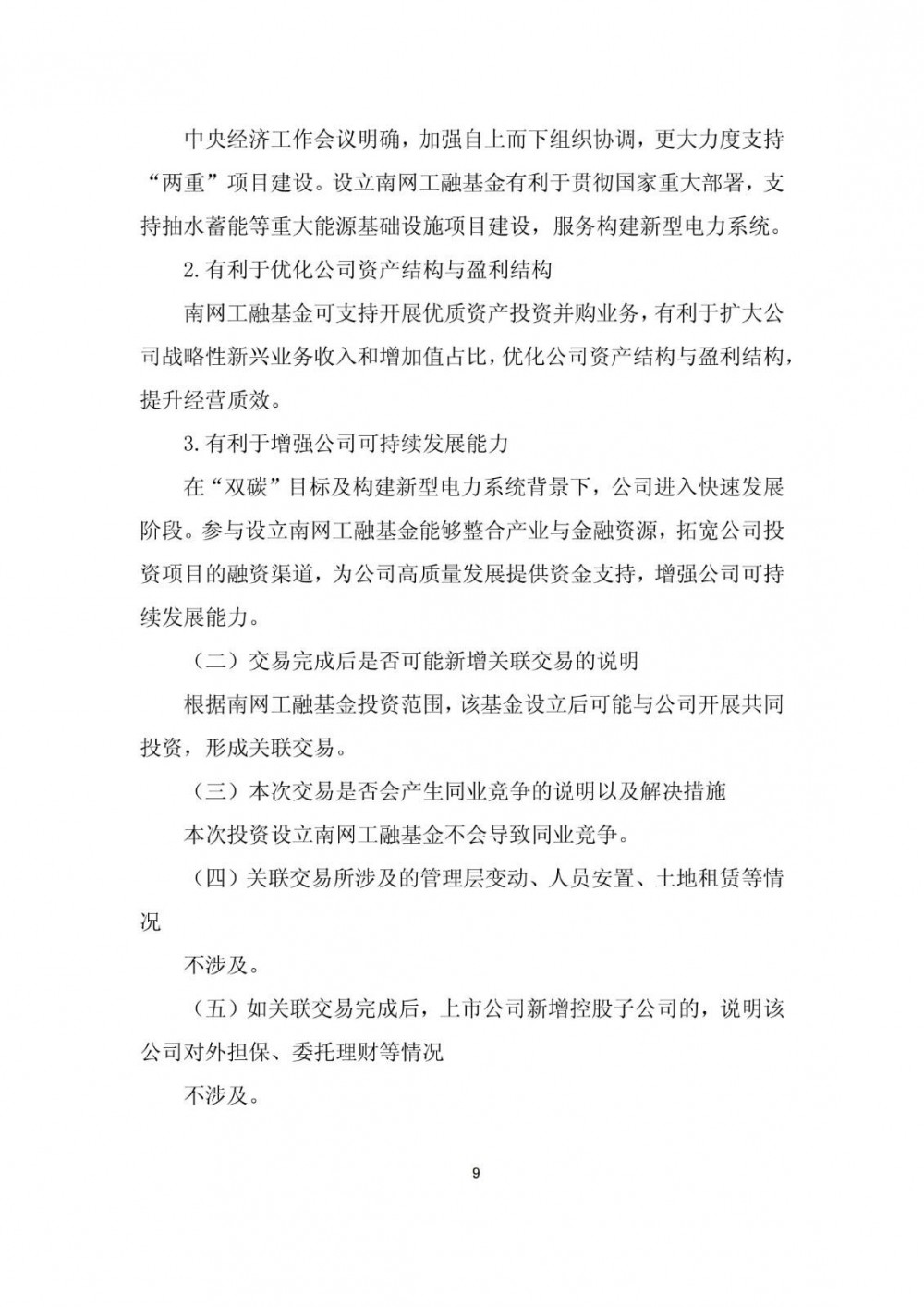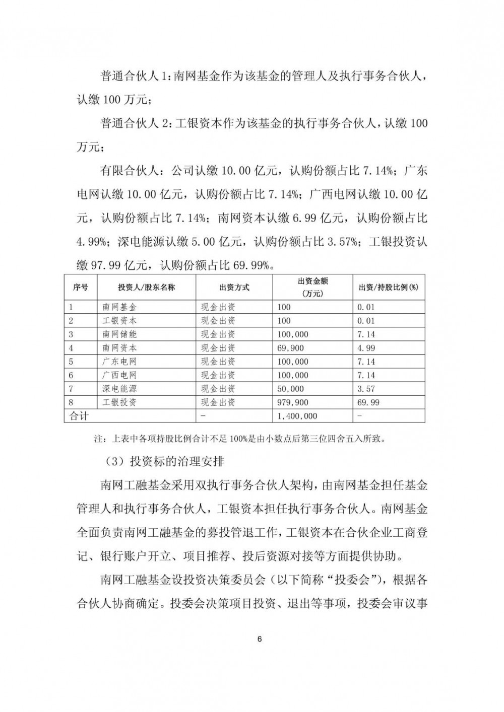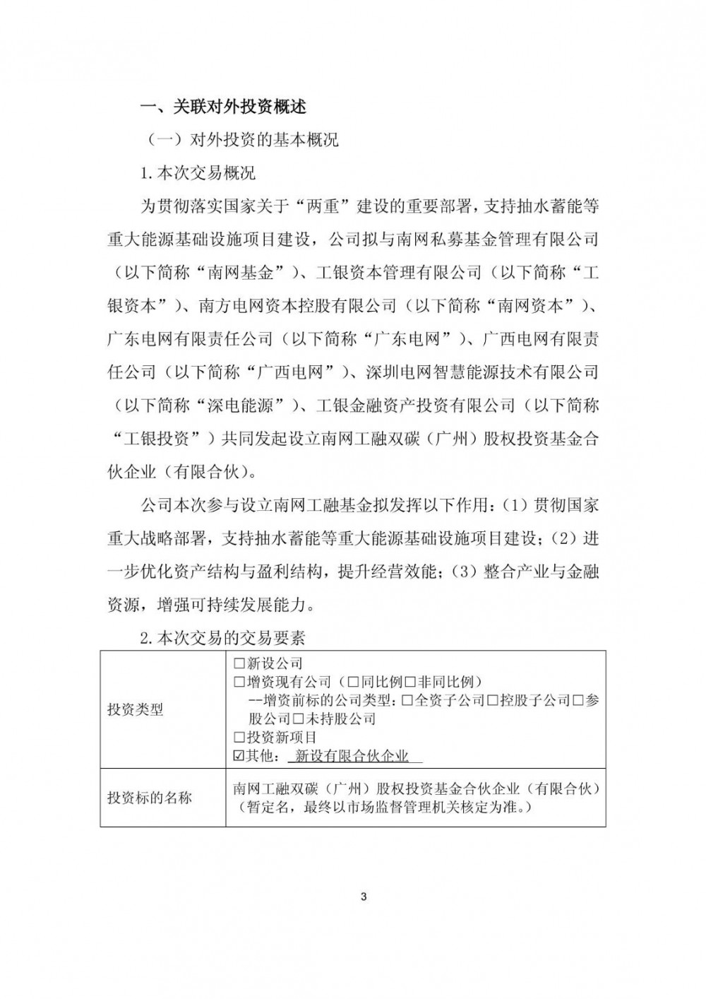 公告显示,除已经股东会审议通过的日常关联交易外,最近12个月公司与同一关联人南方电网公司及其控制的主体进行的交易金额累计为11.24亿元,达到公司最近一期经审计净资产绝对值5%以上。关联交易事项包括:公司向南方鼎元资产运营有限责任公司租赁其拥有产权的房屋,租期3年,租金(含税)总计不超过人民币1.24亿元,以及本次公司投资10亿元参与设立南网工融基金。