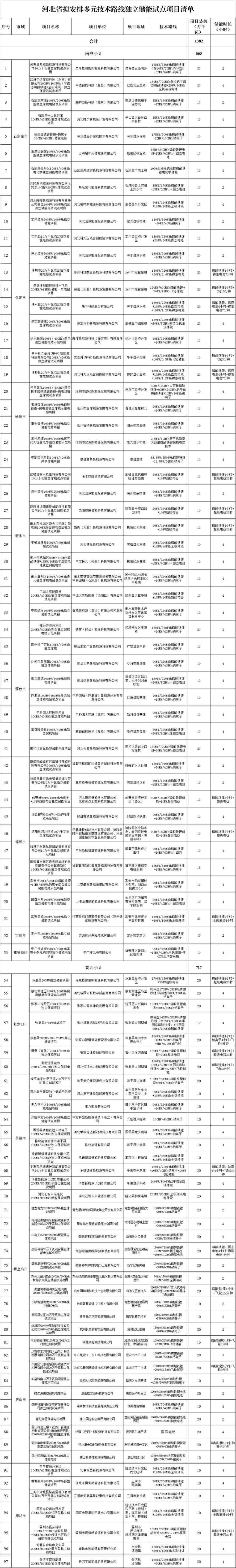河北省拟安排多元技术路线独立储能试点项目情况公示