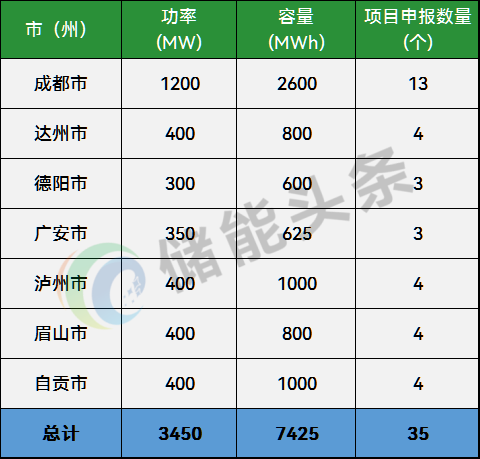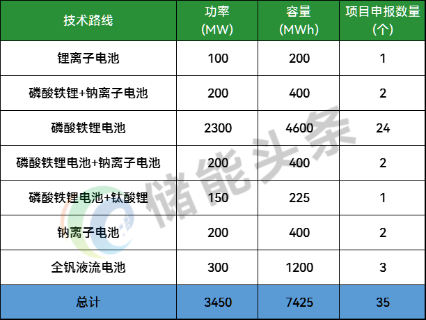 此次公布的项目清单共计35个,总规模为3450MW/7425MWh。