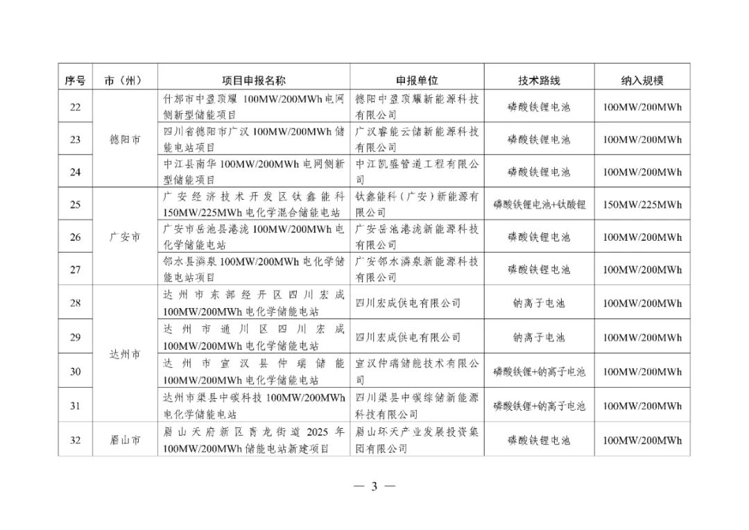 此前9月11日,四川省能源局发布《关于拟纳入2025年第二批电网侧新型储能项目清单的公示》(详见四川公布2025年第二批电网侧储能项目清单,华能、中国电建、通威等入选),本次正式发布的项目和开发商与此前公布的项目基本一致,并未发生大的变动。仅有“广安经济技术开发区钛鑫能科150MW/225MWh电化学混合储能电站”在正式公布文件中,将技术路线变更为“磷酸铁锂电池+钛酸锂”,而此前公布的技术路线为“磷酸铁锂电池”。