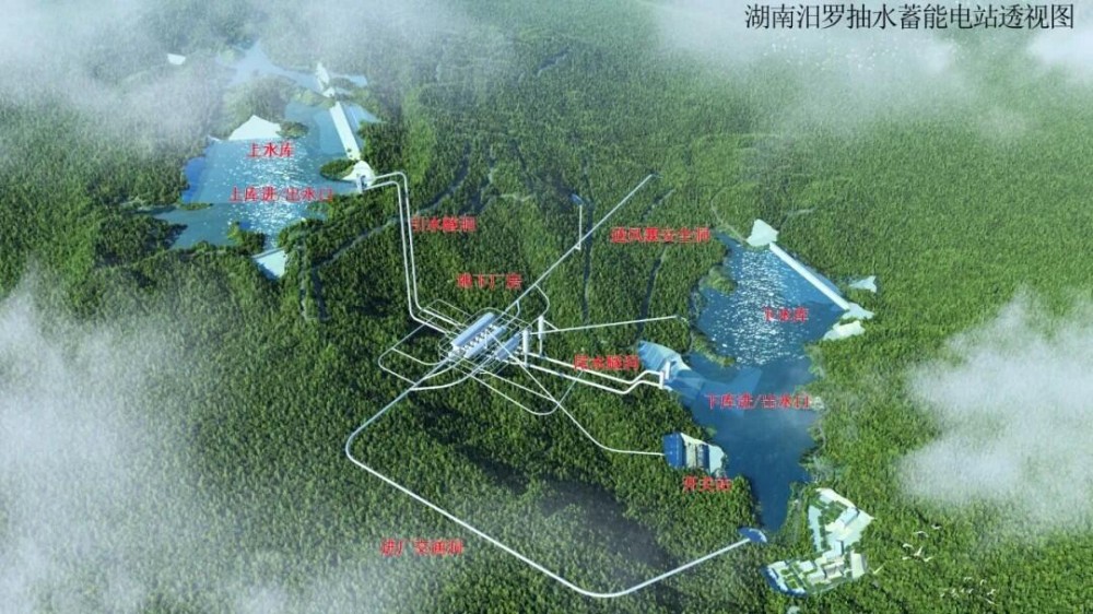 汨罗抽水蓄能电站位于湖南省岳阳市汨罗市川山坪镇,总装机容量1200兆瓦,安装4台单机容量300兆瓦的可逆式水泵水轮发电机组,主要建设内容包括上水库、输水系统、地下厂房系统、下水库及地面开关站等。项目建成后,将承担华中电网的调峰、填谷、调频、调相、储能、系统备用和黑启动等任务,年均发电量预计约12.77亿千瓦时,成为保障区域电网安全稳定运行的“稳定器”“调节器”“平衡器”,并作为“绿色充电宝”有力支撑新能源消纳。湖南分公司主要承建上水库主坝、副坝、进出口工程,以及下水库大坝和库岸防护等关键工程,全程参与主体项目建设。