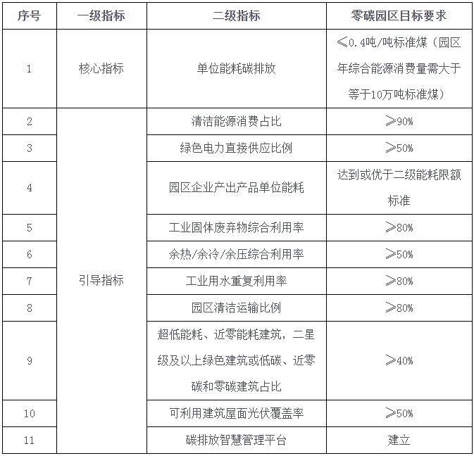 核心指标:零碳园区建设必须达到的目标,是园区验收评估的首要条件,达不到核心指标要求的园区,原则上不得申请验收。