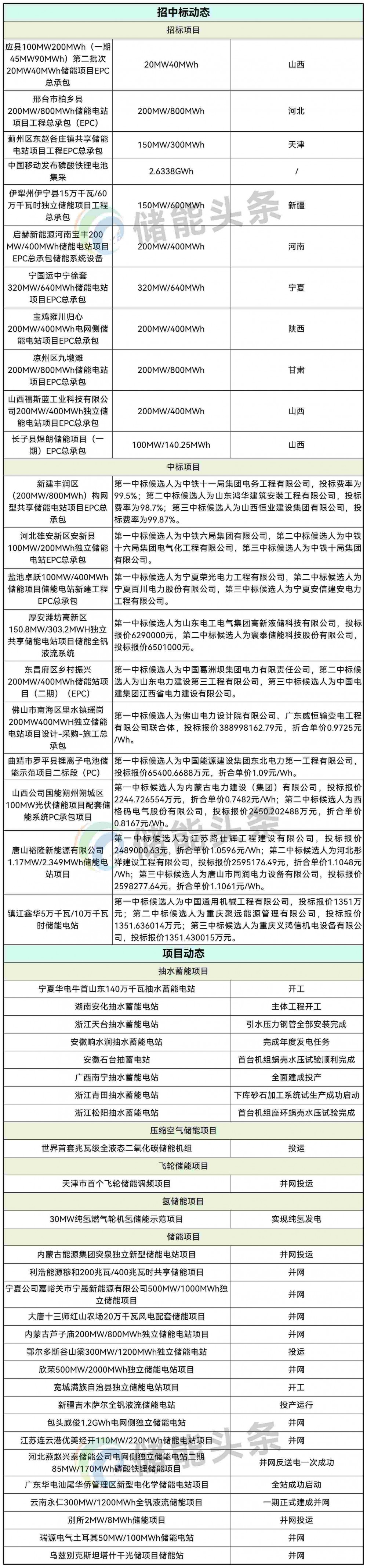 12月28日,河北雄安新区安新县100MW/200MWh独立储能电站EPC总承包项目中标候选人公示。第一中标候选人为中铁六局集团有限公司,投标报价为213750000元,折合单价1.0688元/Wh;第二中标候选人为中铁十六局集团电气化工程有限公司,投标报价为205091636元,折合单价1.0255元/Wh;第三中标候选人为中铁十局集团有限公司,投标报价为231361105元,折合单价1.1568元/Wh。河北雄安新区安新县100MW/200MWh独立储能电站EPC总承包项目,建设地点在河北省雄安新区安新县境内,项目计划工期180日历天。招标范围包括本工程设计、施工总承包至竣工验收,保修期内的全部工作。投标人应具有工程设计综合资质甲级或电力行业工程设计送、变电工程乙级及以上资质、建筑工程或电力工程施工总承包二级及以上资质,并在人员、设备、资金等方面具有相应能力的企业。(来源:招标通电子招投标交易平台)