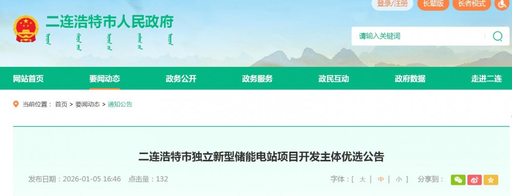 二连浩特市独立新型储能电站项目开发主体优选公告