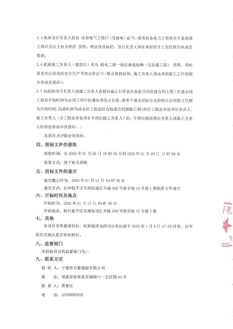 项目招标人为宁德市万豪储能有限公司,本项目投资估算50000万元,工程概算48000万元。