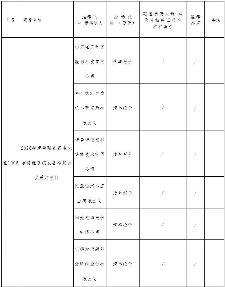 储能头条获悉,2026年1月6日,中国绿发投资集团公示了2026年度磷酸铁锂电化学储能系统集采的中标候选人。