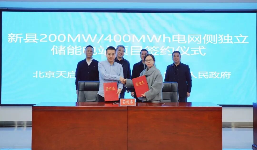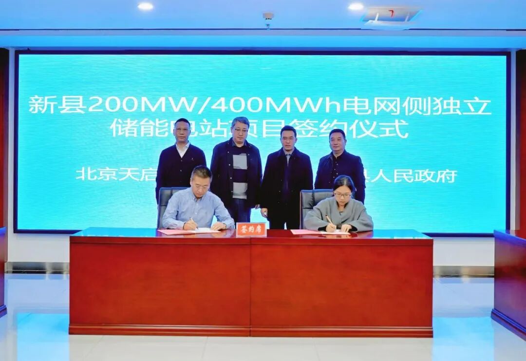 在与会领导的共同见证下,新县人民政府副县长李勍与天启鸿源公司代表、储能事业部总经理杨继强正式签署合作协议。