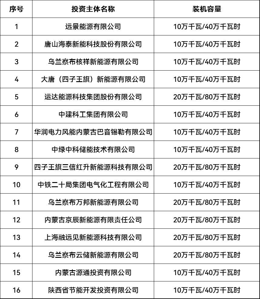 储能头条获悉,1月12日,乌兰察布市独立新型储能电站项目投资主体优选结果公示。